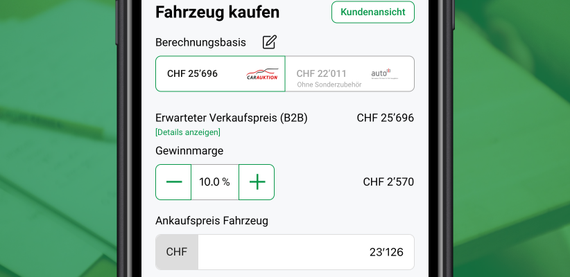 By scanning the vehicle registration document or manually searching for the vehicle, the app determines the basic residual value of the vehicle in just a few seconds.